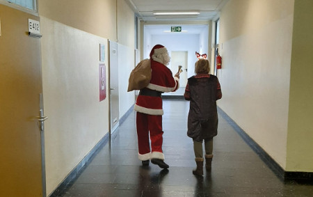 Am Donnerstag, dem 19. Dezember 2019, besuchten nach altem Brauch der Weihnachtsmann und Rudi, das Rentier, mehrere Klassen der Berufsfachschule am Nicolaus-August-Otto-Berufskolleg.